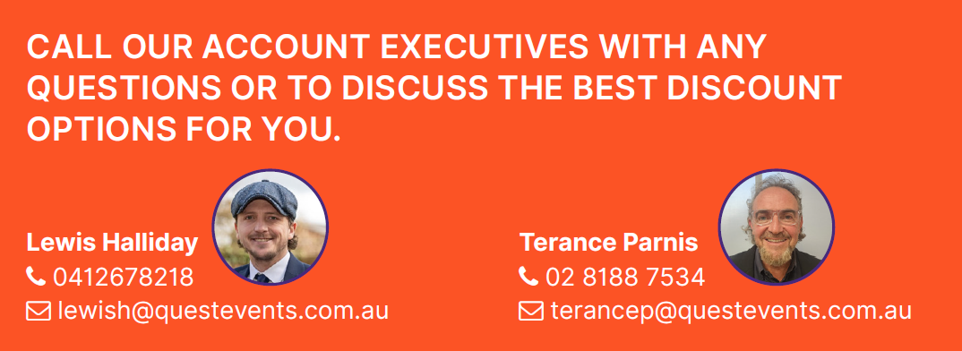 Important: please familiarise yourself with the Quest Events cancellation policy and all other terms and conditions before registering for the event. If you have any questions, please call the booking hotline on +61 (0)2 9977 0565.